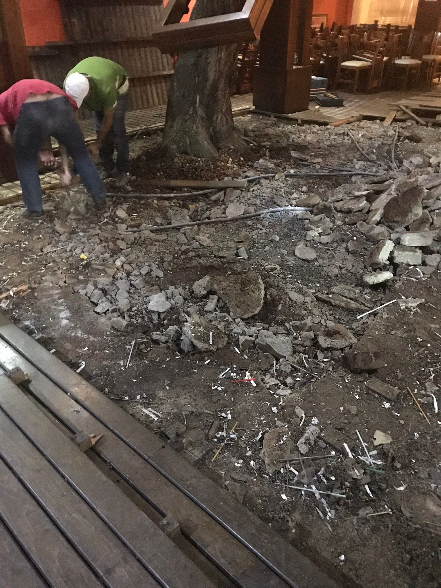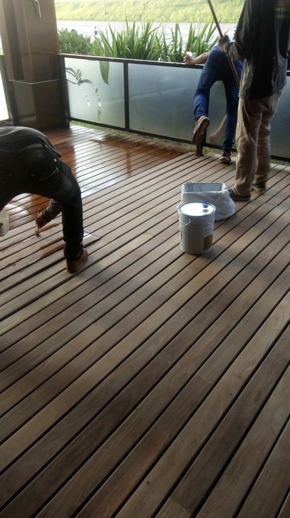 Restauração de Piso com ajuste de jardim e execução de forro de lambril